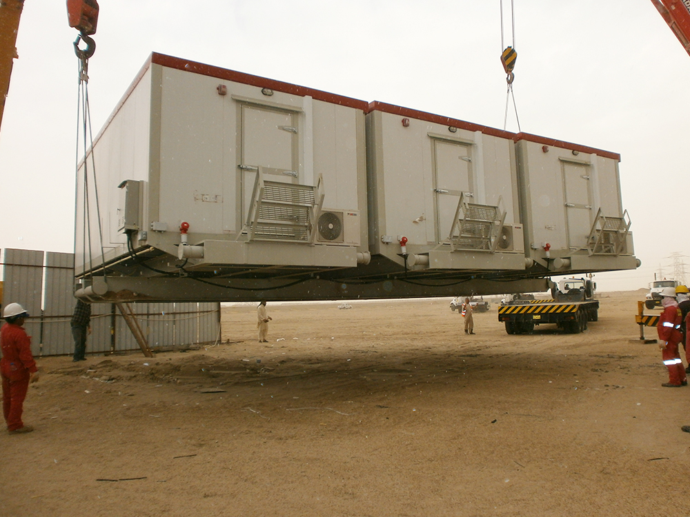 These are portable cabins (skid mounted) that are popularly installed near oil fields to set up offices or to accommodate employees.