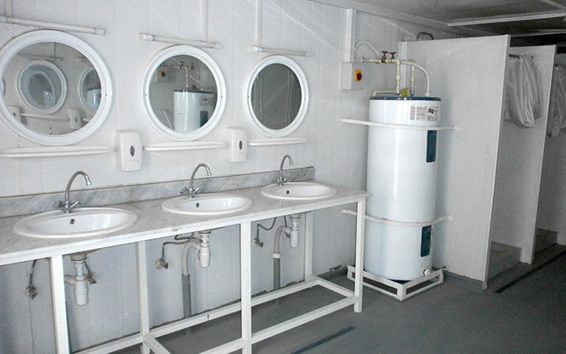 Can be manufactured into various designs (Male/female toilet units, including all the required sanitary fittings and fixtures i.e. water closets, sinks, urinals, mirrors, exhaust fans etc.)